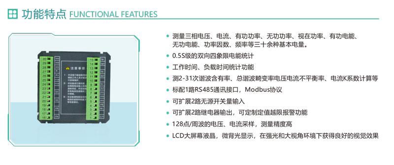 1.測量三相電壓、電流、有功功率、無功功率、視在功率、有功電能、