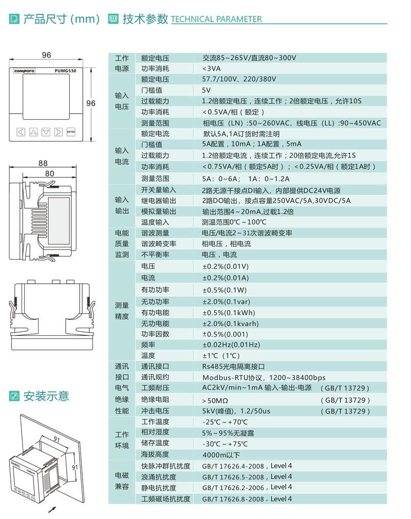 PUMG530系列三相智能電力儀表功能特點