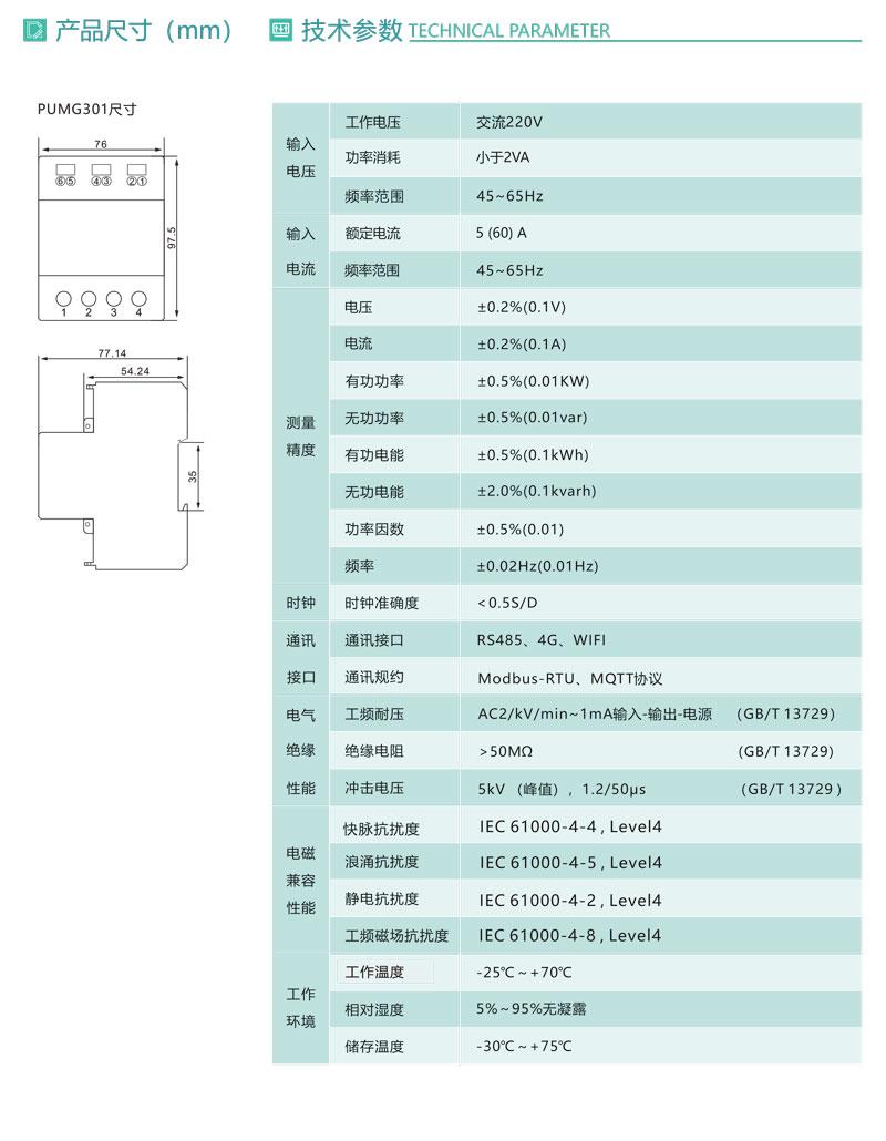 PUMG301單相導軌式智能電能表用微電子技術和進口專用大規模集成電路,應用數字采樣處理技術及SMT工藝等先進的技術,具有可靠性高,體積小巧,安裝方便等特點。