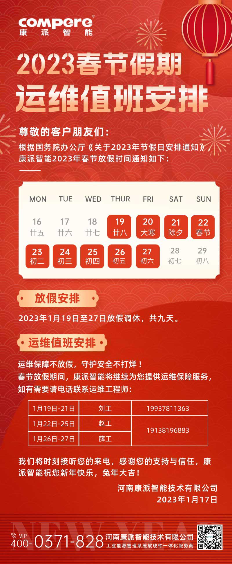 2023年康派智能春節(jié)放假通知