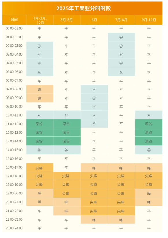低谷時(shí)段為10:00至15:00,其中,深谷時(shí)段為11:00至14:00;高峰時(shí)段為17:00至22:00,其中,尖峰時(shí)段為17:00至20:00;其余時(shí)段為平時(shí)段。