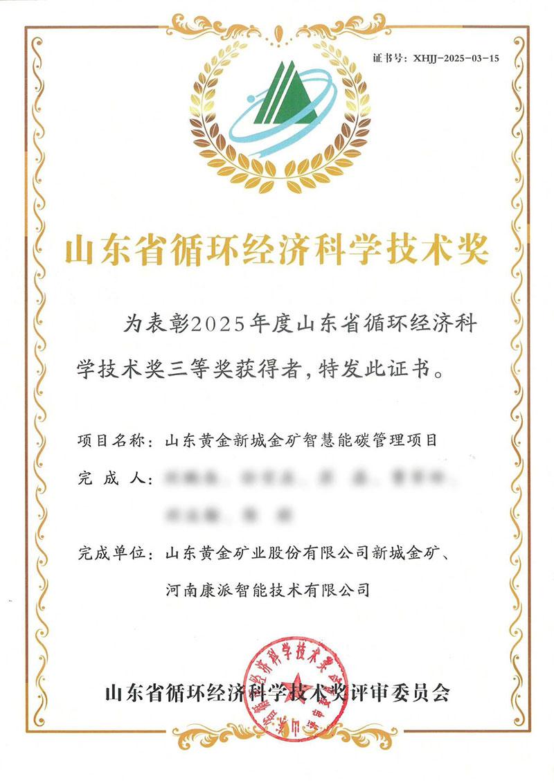 河南康派智能技術有限公司聯合山東黃金礦業股份有限公司新城金礦共同打造的 “山東黃金新城金礦智慧能碳管理項目”,憑借其突出的技術創新實力與顯著的綠色實踐成效,成功斬獲山東省循環經濟科學技術獎三等獎,用硬核實力詮釋了科技賦能綠色發展的深刻內涵。