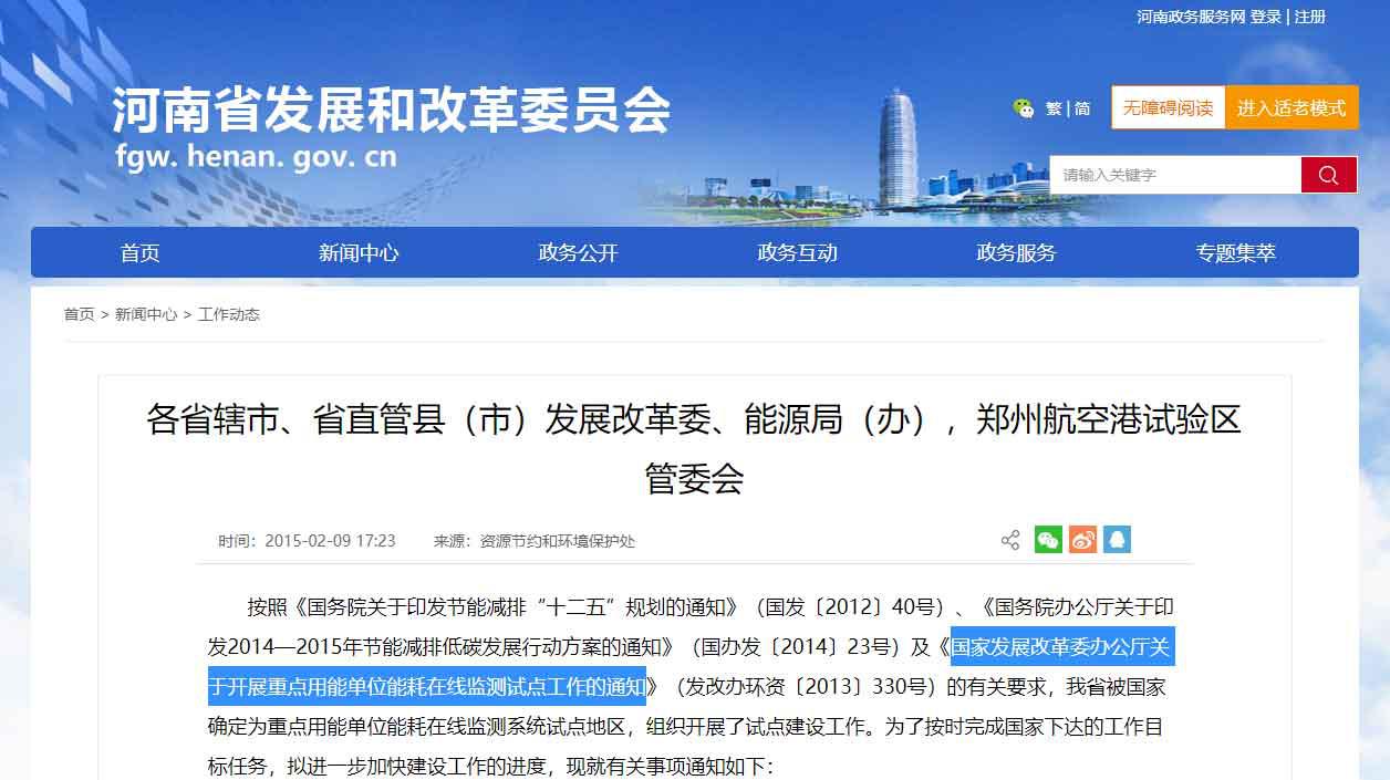 根據(jù)國家發(fā)展改革委、質(zhì)檢總局聯(lián)合印發(fā)的《重點(diǎn)用能單位能耗在線監(jiān)測系統(tǒng)推廣建設(shè)工作方案》及《國家發(fā)展改革委辦公廳關(guān)于開展重點(diǎn)用能單位能耗在線監(jiān)測試點(diǎn)工作的通知》(發(fā)改辦環(huán)資〔2013〕330號)的有關(guān)要求,加快河南省重點(diǎn)用能單位能耗在線監(jiān)測系統(tǒng)平臺建設(shè),推進(jìn)重點(diǎn)用能單位完善能源計(jì)量體系、提升能源管理精細(xì)化水平。