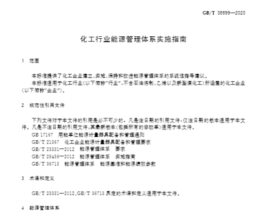 本標準依據GB/T 23331-2012和GB/T 29455-2012,結合化工企業特點,指導化工企業在開展能源管理時充分考慮不同企業能源消耗的差異性以及同一企業不同條件下能耗的變化特征。