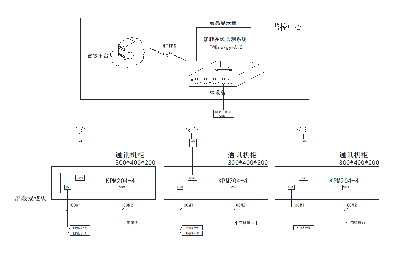 端設備安裝在企業(yè)配置中心,需要有可用的外網(wǎng)和內(nèi)網(wǎng)接口,由于通訊管理機使用4G的方式傳輸數(shù)據(jù),因此端設備安裝位置比較靈活。